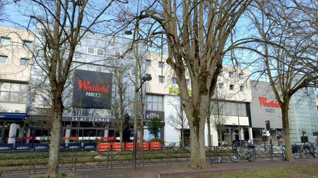 Nous traversons différentes routes et, surprise, nous arrivons au centre commercial de Parly 2 que nous longeons.