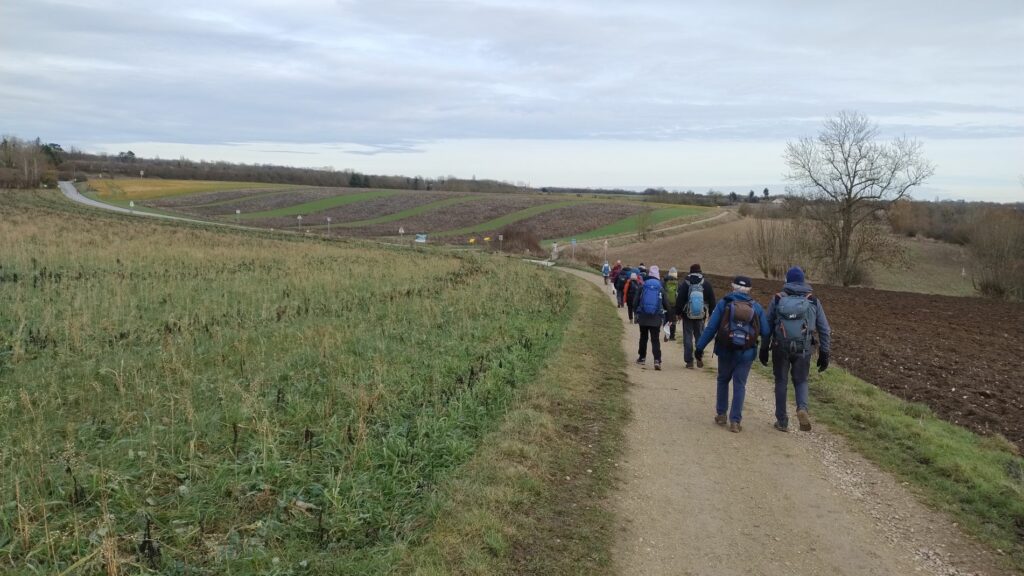 Nous traversons des plaines agricoles et la ferme de Pontaly d’où nous avons des vues imprenables sur les champs, les forêts et les villages au loin.