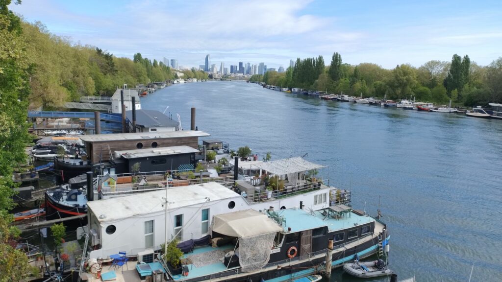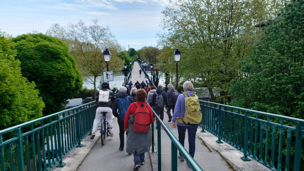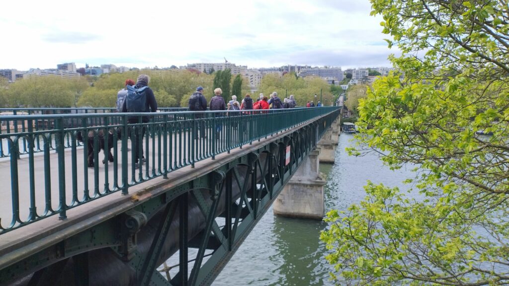 Nous traversons la Seine par la passerelle de l’Avre un pont-aqueduc emblématique de l’Ouest parisien. Construite entre 1891 et 1893, la passerelle s’inscrit dans un vaste projet d’alimentation en eau de Paris. Elle fait partie de l’aqueduc de l’Avre, destiné à acheminer l’eau captée en Normandie (rivière Avre affluent de l’Eure) jusqu’à la capitale.