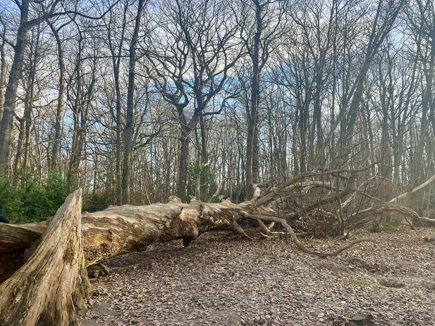 Un petit arrêt auprès d’un tronc d’arbre impressionnant qui fera le parfait support de nos sacs pour notre 1ère pause de la journée