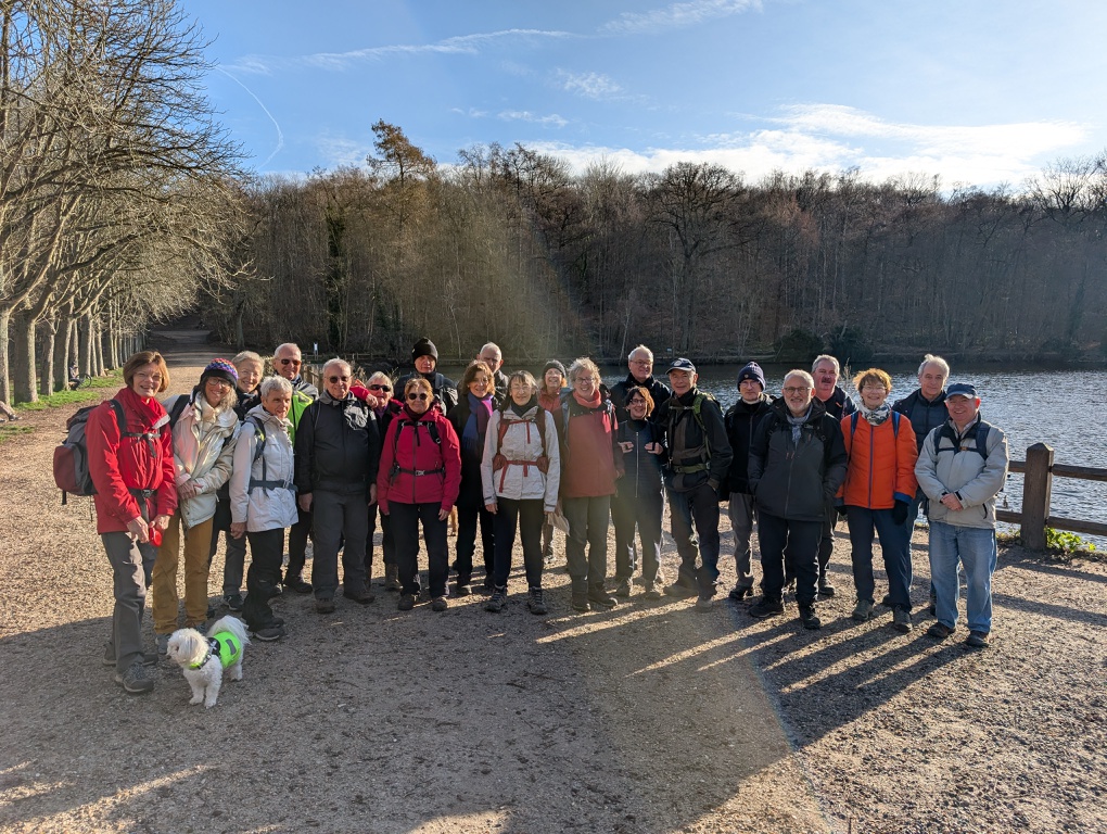 Pour cette rando préparée par Eric, nous nous retrouvons à 23 à la sortie de la gare de Bougival avec nos mascottes Joy et Nala. Le beau temps a donné envie à nos adhérents de participer à cette rando.