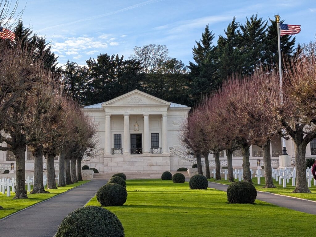 Nous visitons le cimetière militaire Américain et sa Chapelle. Depuis la Chapelle nous avons une vue imprenable sur Paris.