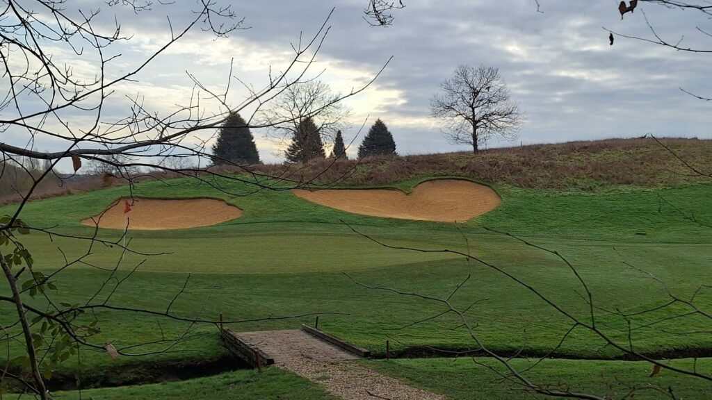 Ensuite nous avons cheminé à travers bois jusqu’à l’Etoile de Montaigu puis nous sommes descendus jusqu’au Ru de Buzo que nous avons longé un bon moment. Sur notre gauche, s’ouvrait à nous la vue sur le golf de Joyenval, espace partagé à cette saison entre les golfeurs et quelques groupes d’oies Bernaches.