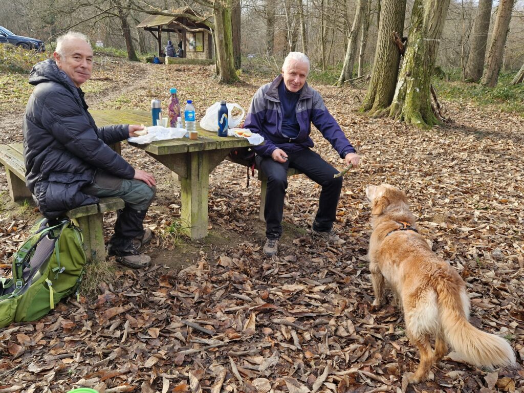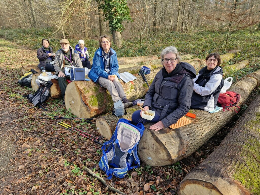 nous avons rejoint l’Etoile du Silence où de nombreux troncs d’arbres fraîchement abattus nous ont servi de table et banc pour le pique-nique. Au passage, quelques bonnes âmes avaient prévu des distributions de petites douceurs.