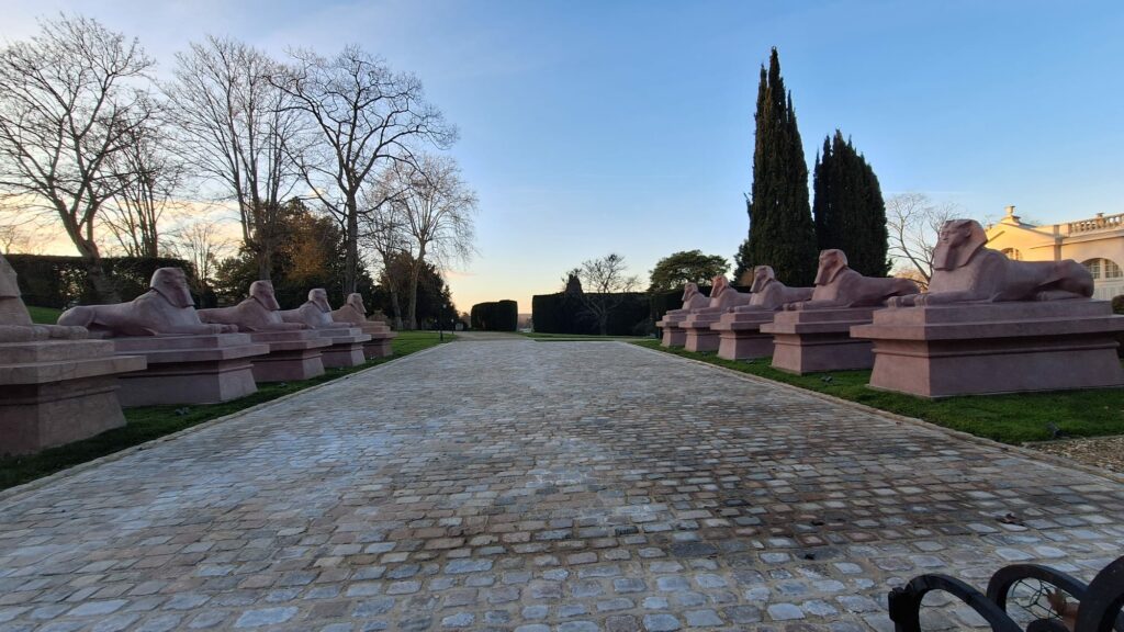 Il transforme et embellit la propriété en y ajoutant l’Orangerie, la majestueuse grille d’entrée qui lui aurait été offerte par les comédiens de la Comédie Française et l’allée des dix sphinx réalisés par Mariette pour l’exposition universelle de 1867.