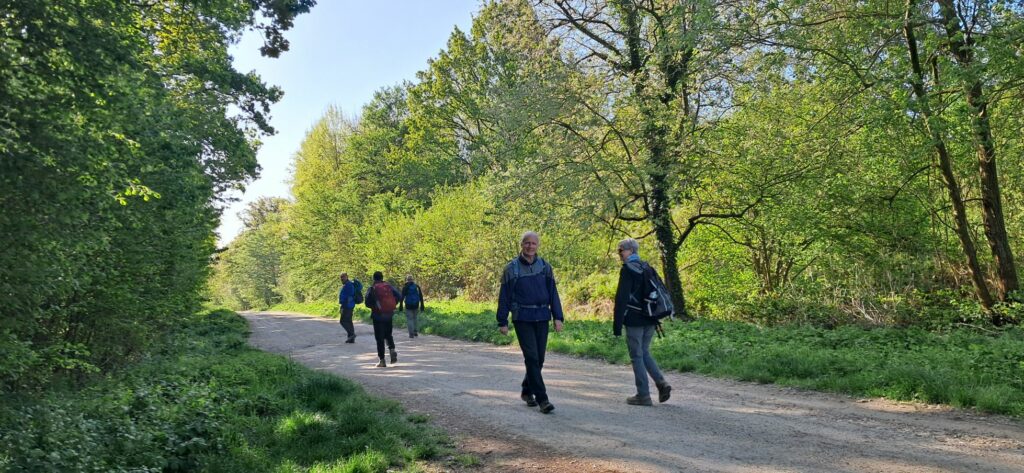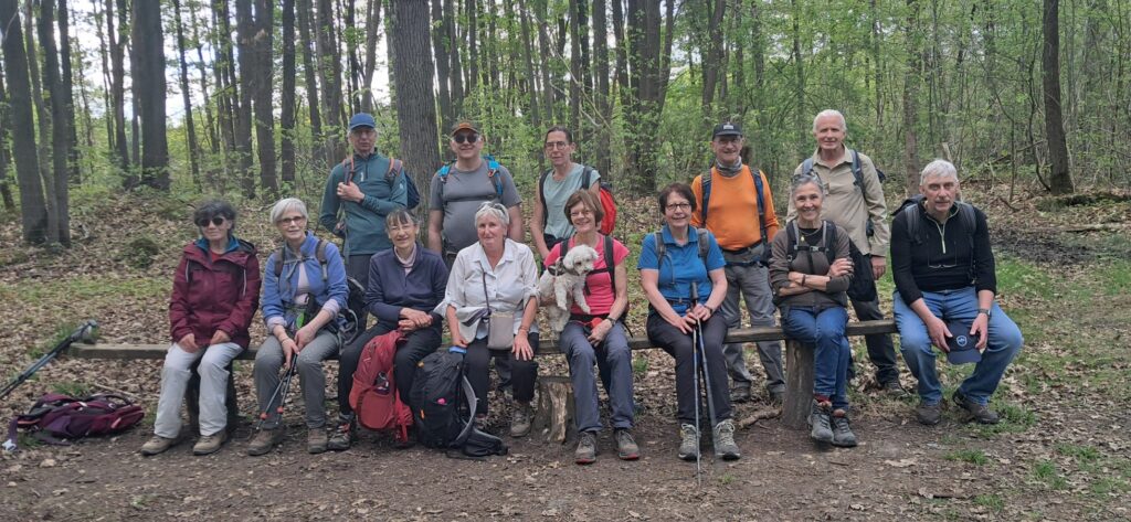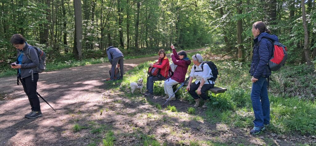 Peu après nous entrons dans la forêt de la Madeleine par le chemin de Jean Racine. Au carrefour du Roi de Rome nous prenons la photo de groupe.