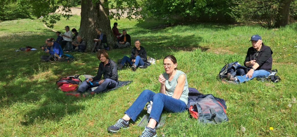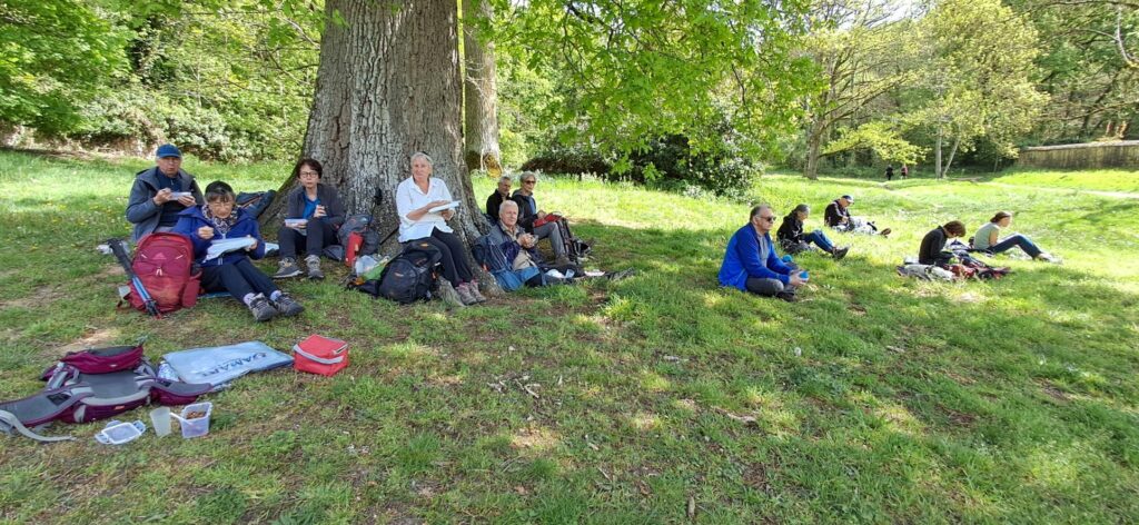 C’est là que nous pique-niquons. Merci aux généreuses adhérentes pour les chocolats, gâteaux et boissons.