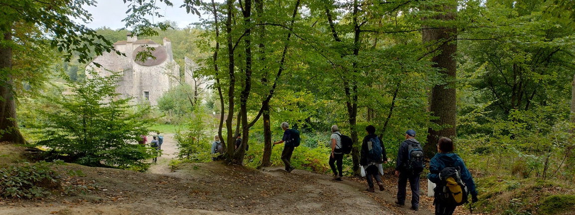 En ce premier jour d’automne, la pluie n’était pas au rendez-vous pour cette randonnée dominicale en forêt …le décor était plutôt bucolique à travers de nombreux petits sentiers parfois bien boueux dont mes chaussures en ont rapporté quelques traces, les dénivelés peu significatifs mais pas toujours quand il s’est agi de parvenir au point culminant d’environ 195 m, les environs du château de la chasse un endroit idéal pour pique-niquer …mais hélas pas sous un grand ciel bleu !