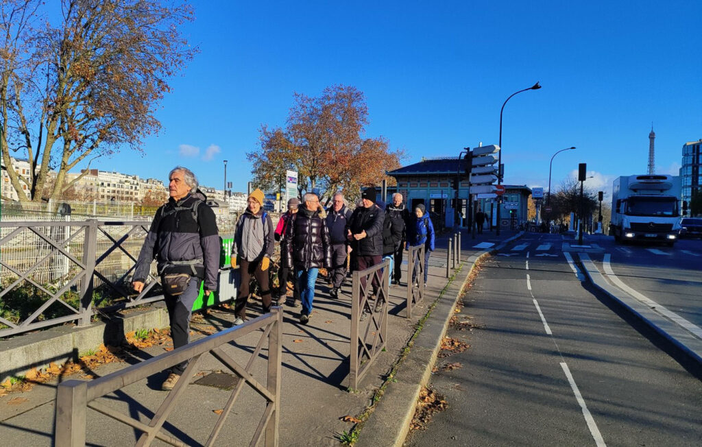 Après s’être retrouvés à l’extérieur, c’est sous un beau soleil imprévu que nous partons à 22 sur le quai André Citroën, jusqu’au parc du même nom.
