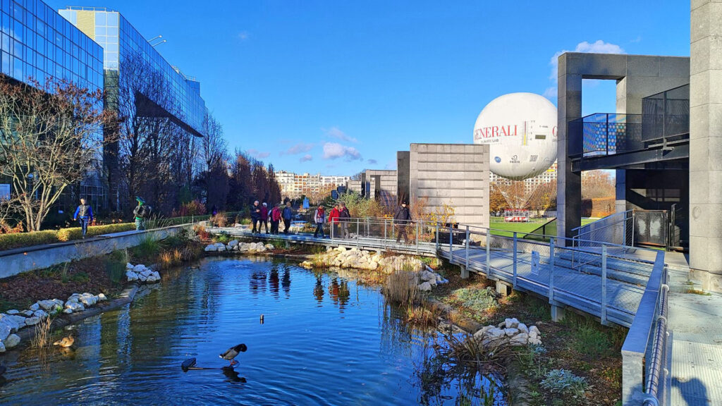 puis nous remontons pour suivre le canal des nymphées au moment de l’atterrissage du ballon qui survole Paris.