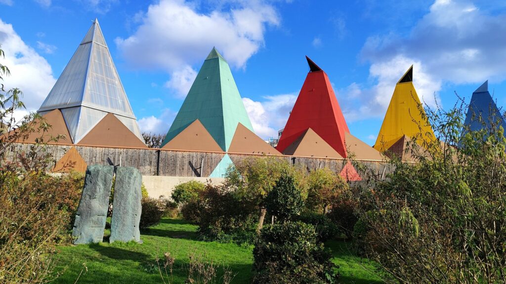 Nous sortons de ce parc pour longer le jardin Caroline Aigle et ses drôles de structures colorées.