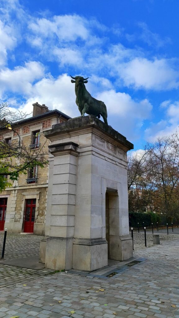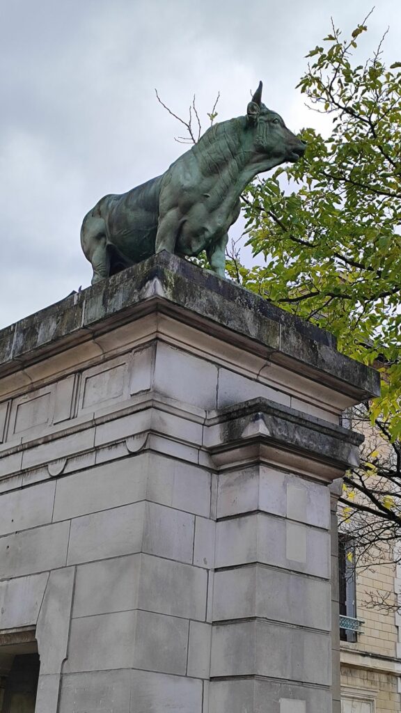 Bien installés, nous prenons notre temps, puis avant de sortir du parc, nous faisons un détour pour admirer les deux taureaux sculptés par Isidore Bonheur qui dominent la porte d’entrée principale et rappellent l’histoire de cet endroit.
