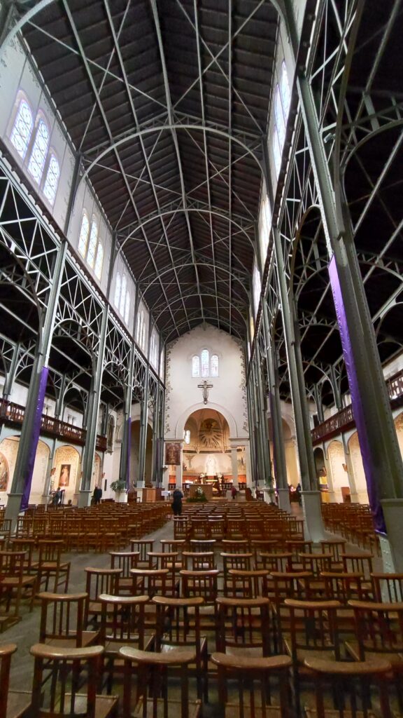 Bâtie pour accueillir  les ouvriers venus travailler à l’Expo Universelle de 1900, c’est une curieuse église avec une structure métallique.
