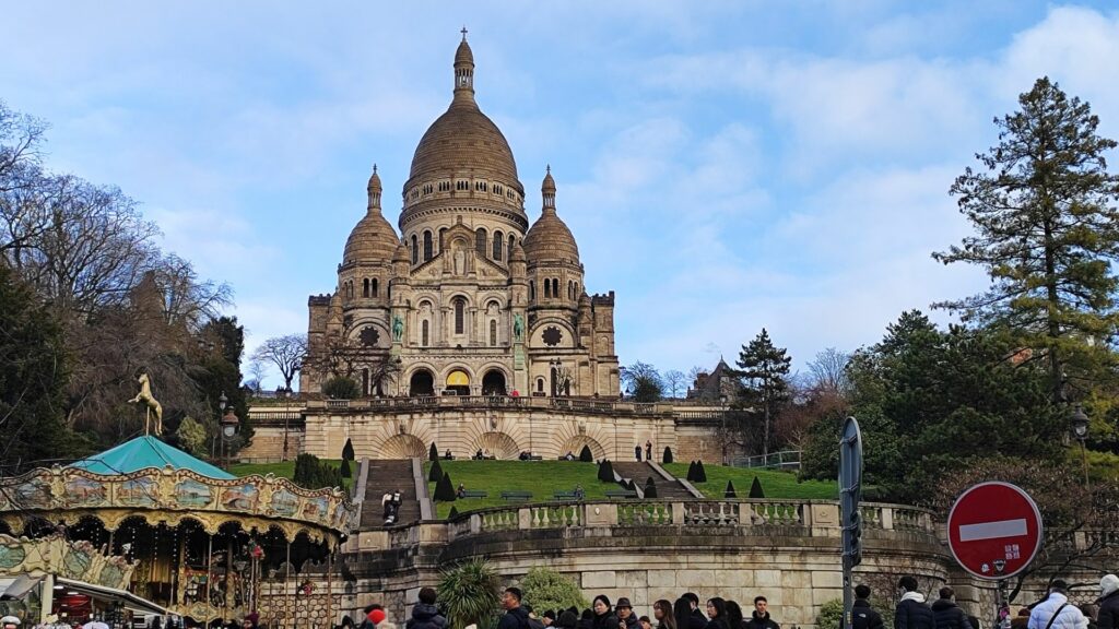 Nous rejoignons rapidement le square Louise Michel au pied du Basilique de Sacré Cœur où nous prenons notre 1ère photo de groupe.