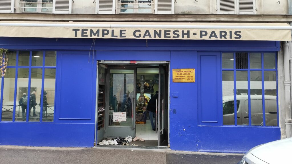 Nous traversons les chemins de fer par un premier pont et arrivons dans la rue Pajol où se trouve le temple Ganesh. Jean-Claude donne des explications sur ce temple Hindou dédié à Ganesh.