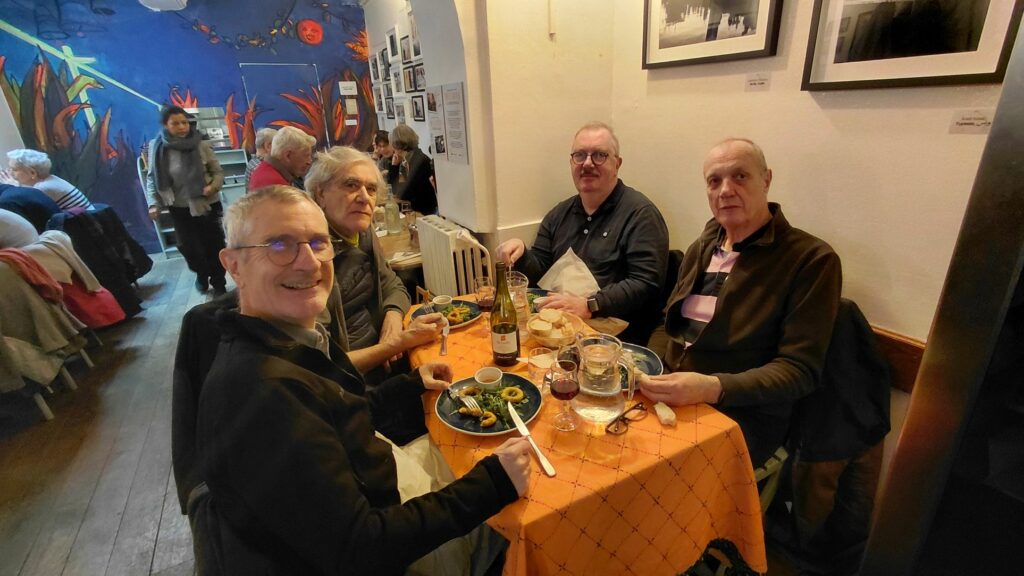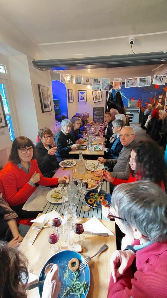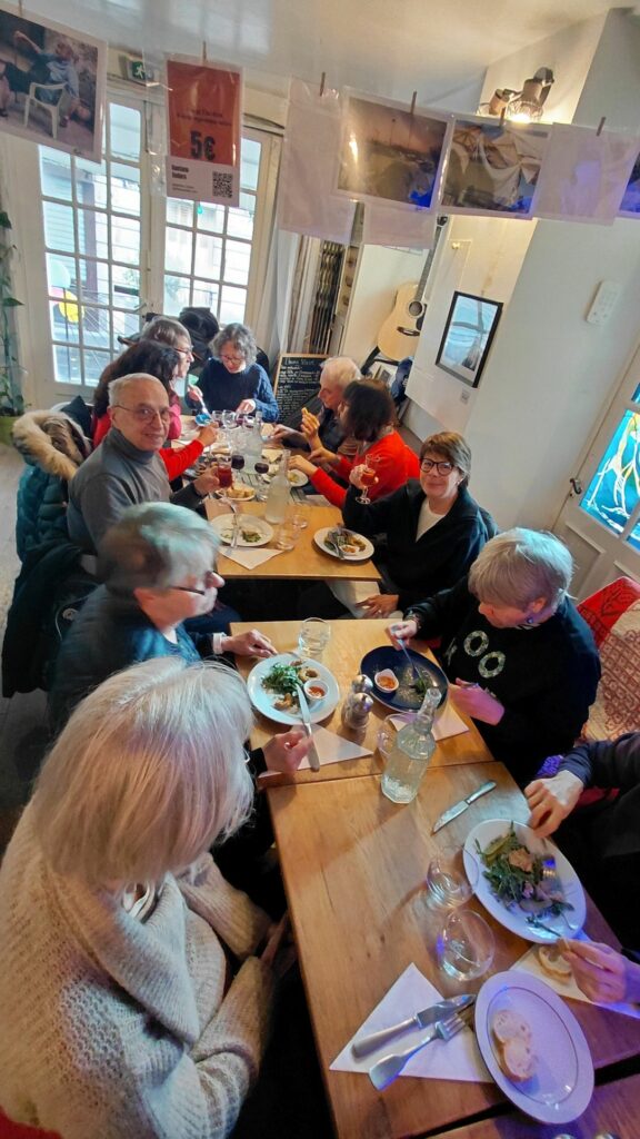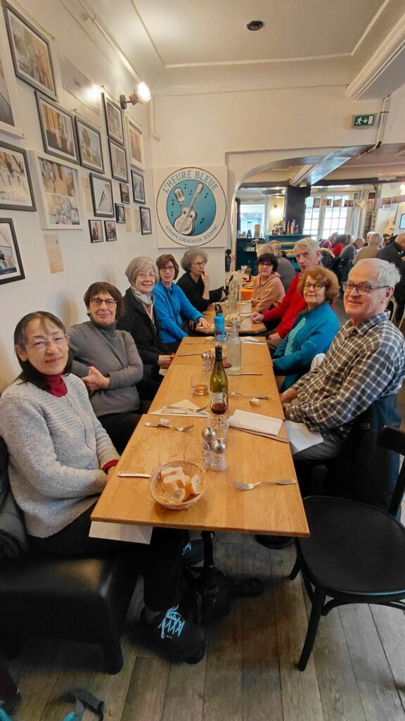Mais il est bientôt midi et à la sortie de ce beau Parc nous arrivons devant notre restaurant l’Heure Bleue. Nous nous installons à de longues tables où les discussions sont animées autour d’un bon repas qui a été apprécié.