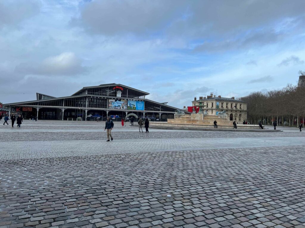 Nous prenons des voies vertes et passons à côté d’une mosaïque avant de rentrer dans le Parc de la Villette que nous traversons.