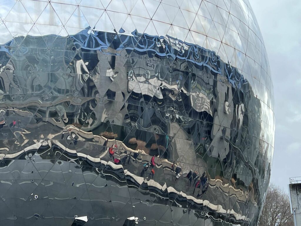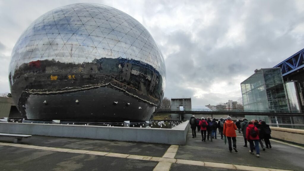 En passant près de la cité des Sciences de l’Industrie nous longeons la Géode qui donne un joli reflet de nos randonneurs.