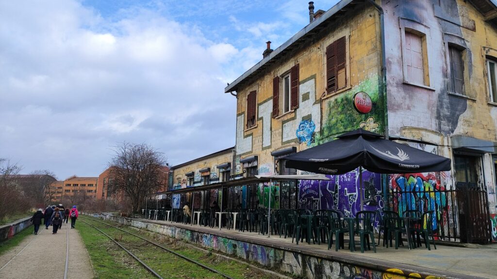 Quelques-uns nous quittent à la station de métro Corentin Cariou et le reste du groupe prend la Petite Ceinture du 19ème jusqu’à Rosa Parks où se termine cette promenade dans Paris.