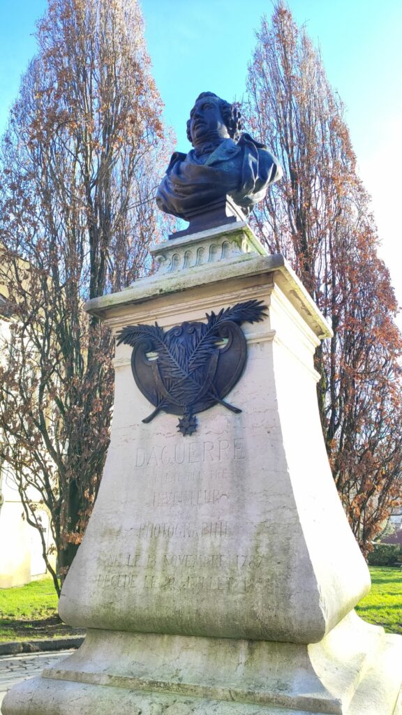 et contemplons le buste de Louis Jacques Mandé Daguerre, inventeur de la photographie, natif de la ville.
