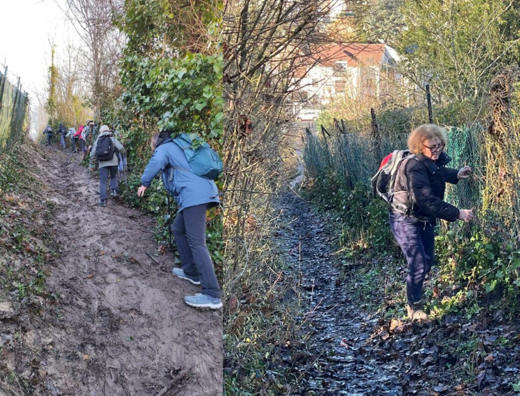 Mais …il aurait peut être fallu se méfier car l’activité de marche à PDR peut vite se transformer en « accro branches ou grillage » ou patinage acrobatique sur terrain gadouilleux ou encore ramper dans la boue …et devenir multi sportive !