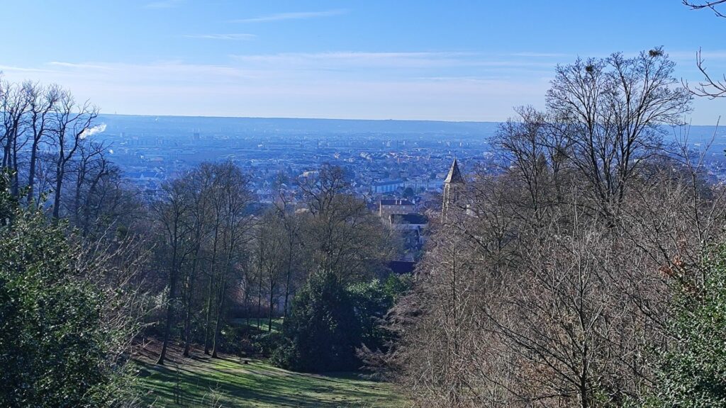 où une nouvelle pente nous mène à un beau point de vue sur la région parisienne.