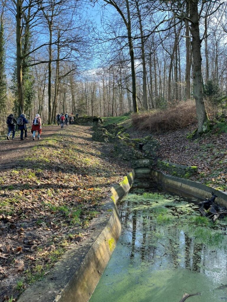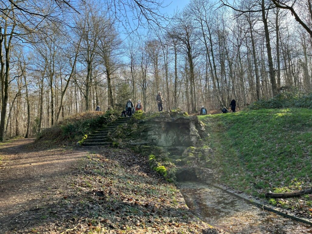 Midi a été marqué depuis longtemps par l’exercice des sirènes d’alarme et la faim commence à se faire sentir. Nous sommes  alors arrivés au pied des cascades de Montigny, vestiges du parc de la résidence de villégiature des frères Pereire.