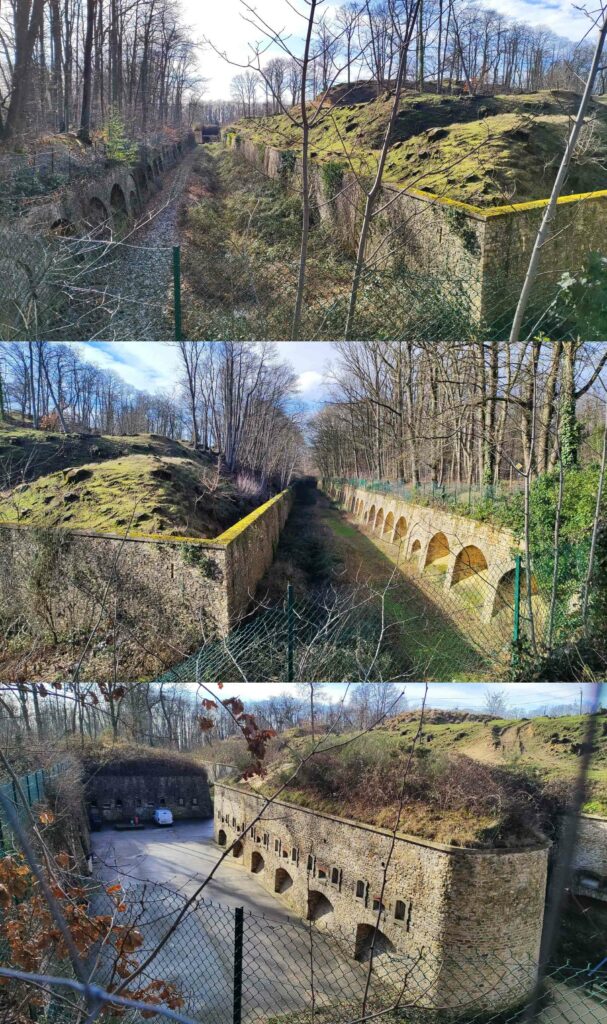 Nous pénétrons enfin dans la forêt régionale des buttes du Parisis où nous découvrons l’entrée envahie par la végétation d’une batterie avancée du fort de Cormeilles (voir photo en tête).