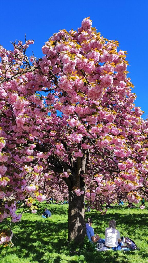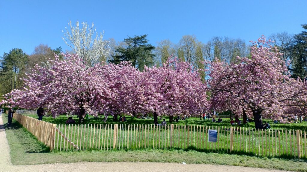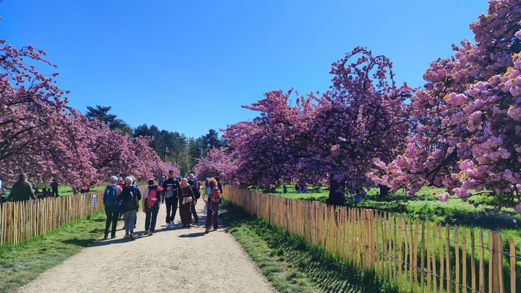 Cette rando (dont le titre « hanami » fait référence à la coutume traditionnelle japonaise d’apprécier la beauté des fleurs, principalement les fleurs de cerisier, lorsque, à partir de fin mars ou début avril, elles entrent en pleine floraison lors de la progression du front de floraison des cerisiers), a pour point d’orgue l’observation des cerisiers en fleurs sur le parterre nord, au bord du canal et même d’essayer d’y pique-niquer.