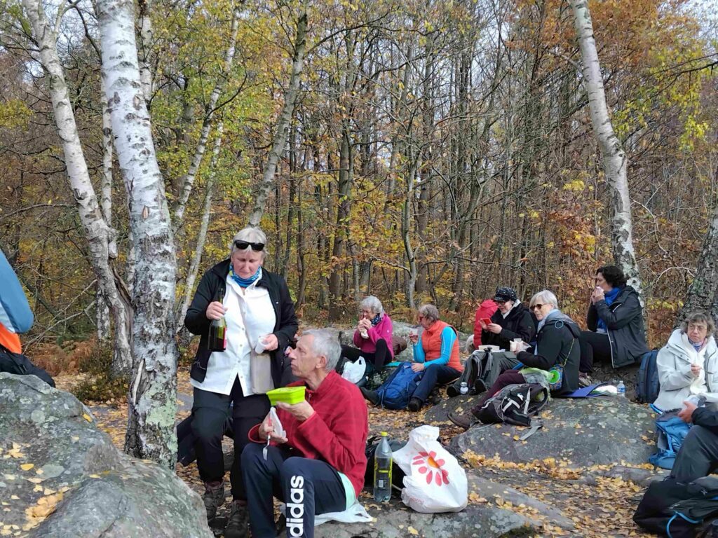 Nous étions 24 randonneurs, plus Joy notre mascotte, décidés à profiter de la belle journée d’automne qui s’annonçait. Nous accueillons Rémi venu faire une randonnée d’essai.